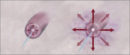 | With the CoolTouch CTEV, a small single needle incision is made in the leg and a fiber is inserted into the varicose vein. The laser is activated and as the fiber is moved through the vein it gently heats and safely closes the vein. Once the vein is closed, the blood that was circulating through this vein is simply rerouted to other healthy veins and the varicose vein essentially vanishes. |